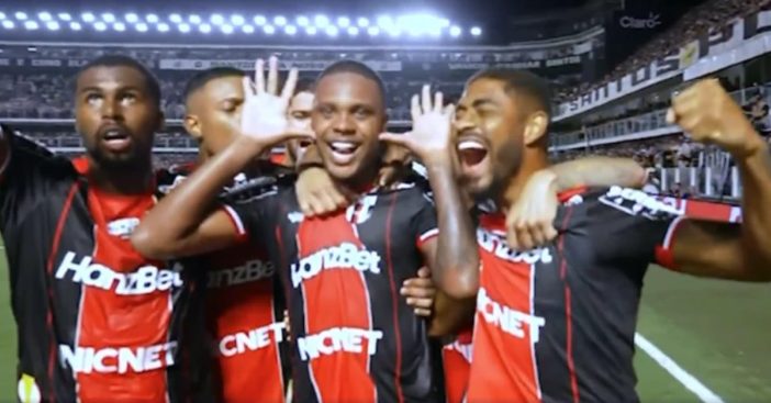 O atacante balançou as redes aos 21 minutos do segundo tempo, após subir mais alto que a defesa santista em um escanteio e cabecear firme para o fundo do gol: 1 a 1. No momento da celebração, Alexandre Jesus imitou Neymar, colocando a língua para fora e pressionando as mãos contra as bochechas, gesto icônico do craque.
