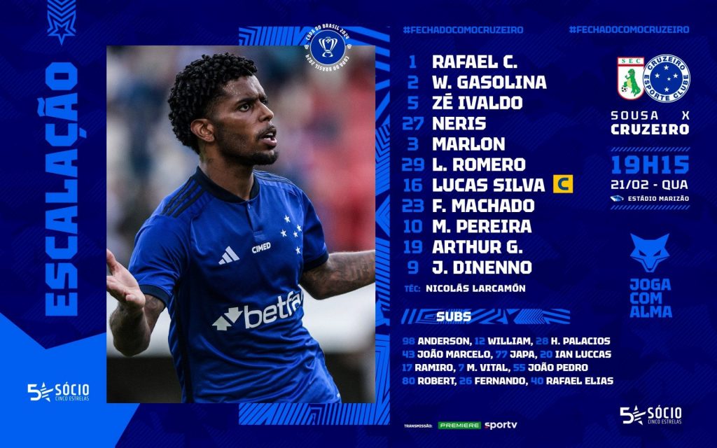 O Cruzeiro entra em campo logo mais ás 19h15 diante do Souza fora de casa, pela primeira fase da Copa do Brasil.