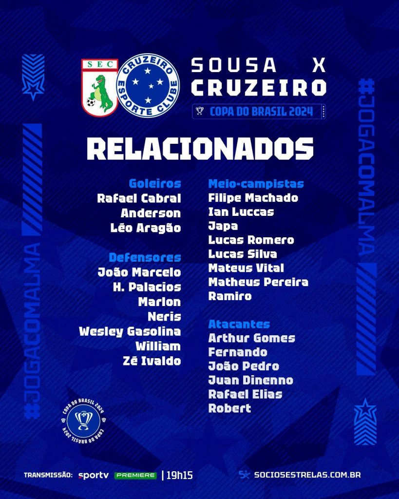 Isso porque, na última rodada, o time celeste não contou com Marlon, Lucas Romero e Matheus Pereira suspensos, além de Lucas Silva e Robert por lesão.