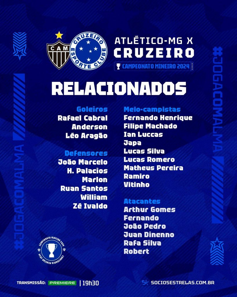 Cruzeiro divulga lista de relacionados para o clássico com novidades importantes