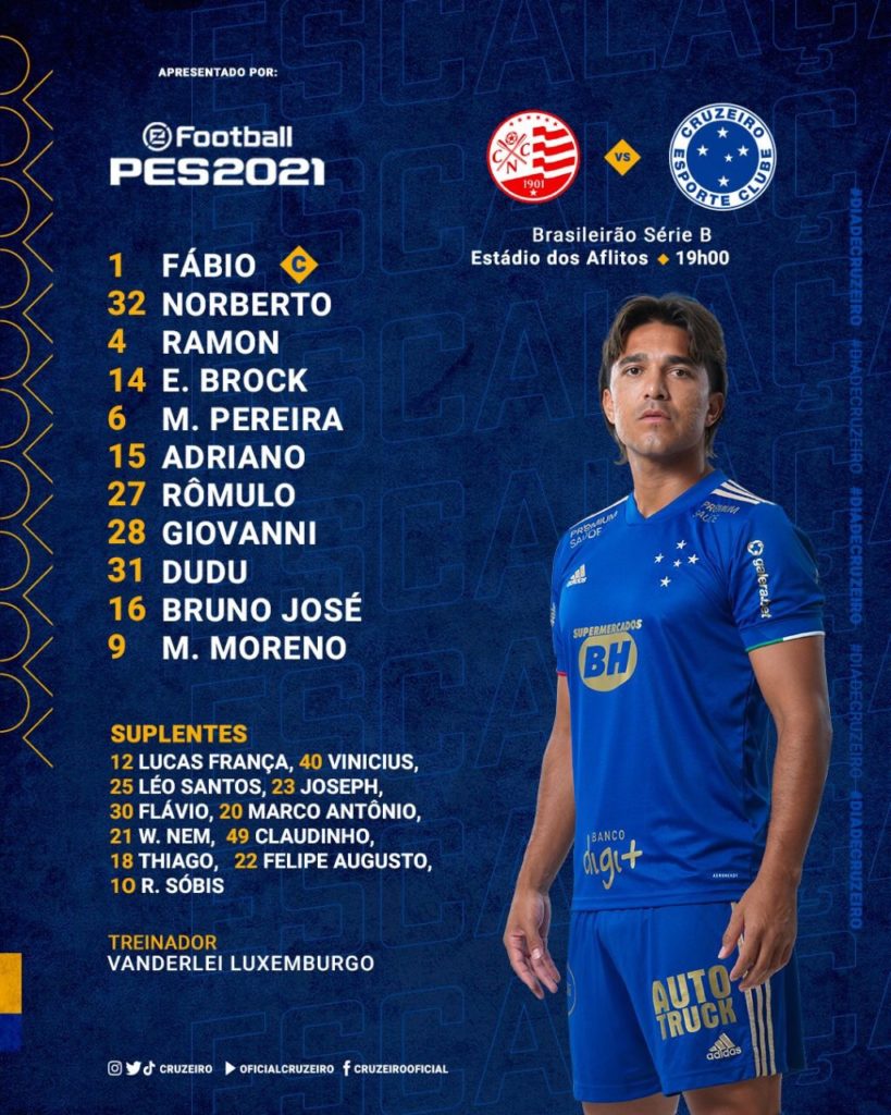 O Cruzeiro divulgou a escalação oficial para a partida de logo mais contra o Náutico, ás 19h nos Aflitos. Entre as novidades está o meia Dudu, que faz sua estreia no time titular.