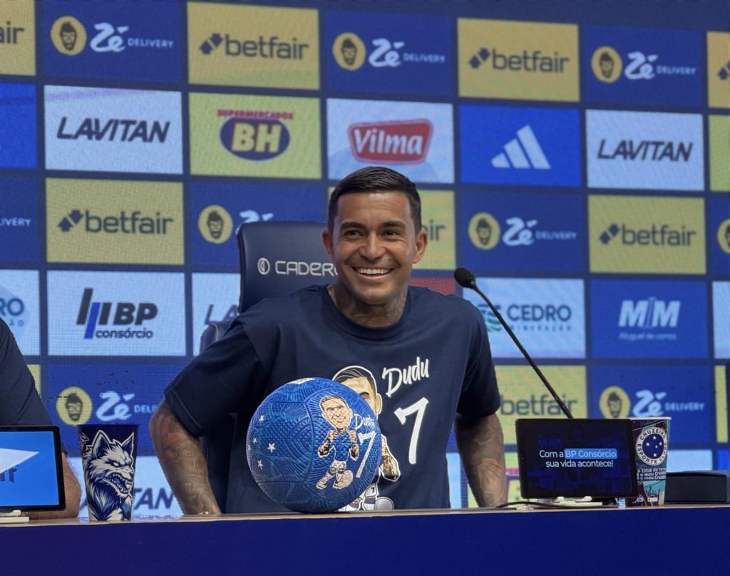 O Cruzeiro apresentou na Toca da Raposa na tarde desta sexta-feira o atacante Dudu, reforço que assinou com o clube após fim de contrato com o Palmeiras.