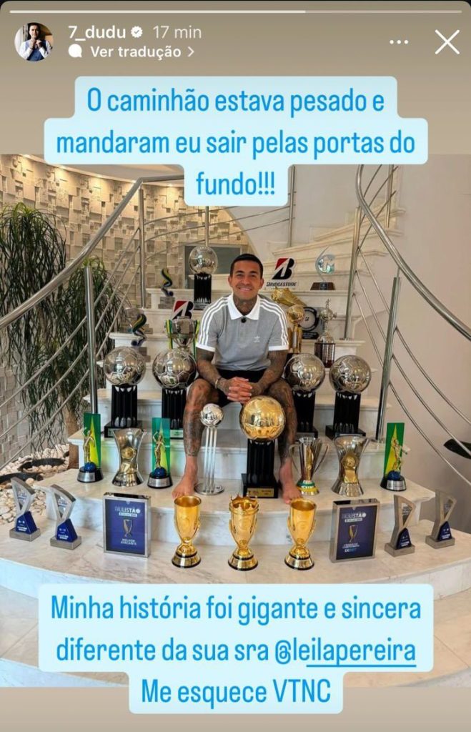 O atacante Dudu, reforço do Cruzeiro, utilizou as redes sociais nesta segunda-feira (13) para rebater as declarações da presidente do Palmeiras, Leila Pereira, que afirmou que ele teria deixado o clube “pela porta dos fundos”. A fala de Leila ocorreu durante um evento de anúncio do novo patrocinador máster do Palmeiras.
