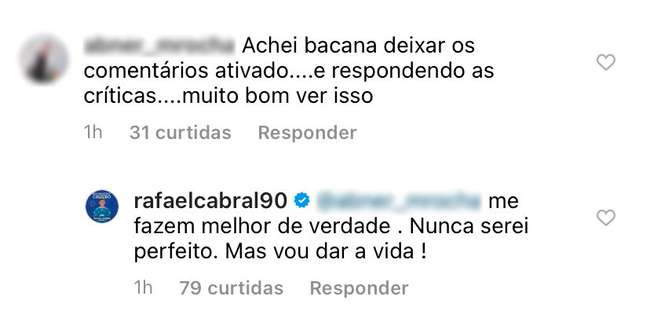 “Rafael Cabral postou um vídeo com as defesas, deixou os comentários abertos e está respondendo a torcida. Acho que tem muito a melhorar em campo, mas isso mostra que é um profissional fenomenal”, elogiou uma torcedora no Twitter.