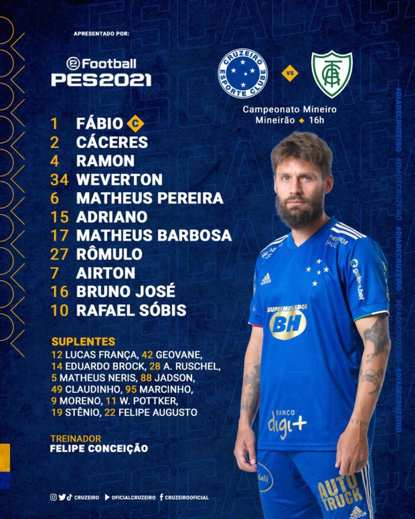 Cruzeiro x América-MG: veja a escalação OFICIAL da Raposa