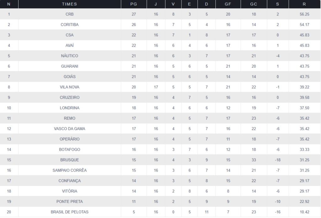 No entanto, os números foram atualizados e poderão conferir de forma detalhada cada estatística de seu time na competição nacional, visando esta 29ª rodada da competição.