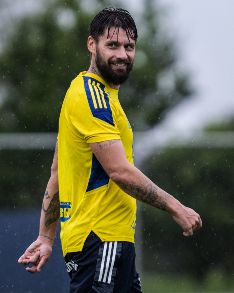 O atacante Rafael Sobis treinou normalmente na rapresentação do clube nesta quinta-feira na Toca da Raposa. O jogador anunciou sua aposentadoria após a vitória diante do Brusque por 2 a 0.